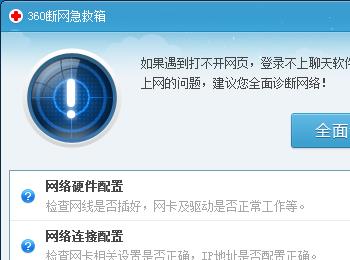 那么以上的故障我们该怎么解决呢,现在给大家介绍一款非常好用的工具,可能好多小伙伴都熟悉的360断网急救箱。360断网急救箱可以综合性的诊断你的电脑断网故障,然后有针对性的进行修复。只要是你的本机故障一般都可以解决哦。