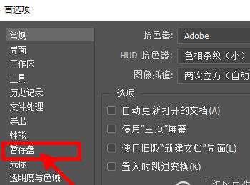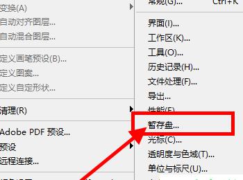 3. 在打开的首选项子菜单中,点击暂存盘选项