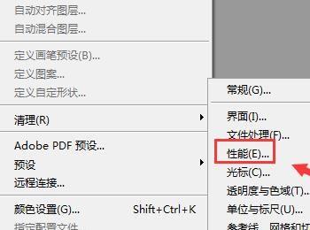 点击首选项在其子级菜单里找到性能选项,如图所示: