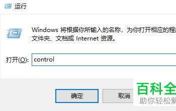 2. 我们在窗口中输入“control”命令,输入完成之后点击确定。