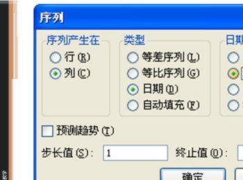 4.第四步,我们可以看到如下图所示的序列页面,点击类型中日期左边的选项框,接着点击工作日左边的选项框,然后点击右下角的确定选项。