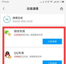 4. 另外,我们还可以选择微信专清和qq专清,根据自己的实际需要,进行清理,释放手机内存空间即可。