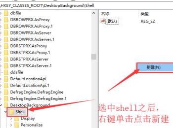 2. 第二步打开【注册表编辑器】窗口后,根据下图箭头所指,先在地址栏中输入【计算机\HKEY_CLASSES_ROOT\DesktopBackground\Shell】并按下【回车】键,接着鼠标右键单击【Shell】文件夹。