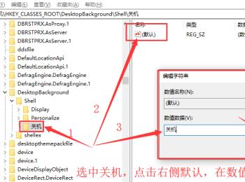 5. 第五步先点击【关机】,接着根据下图箭头所指,在右侧页面中双击【默认】选项,然后将【数值数据】设置为【关机】并点击【确定】。