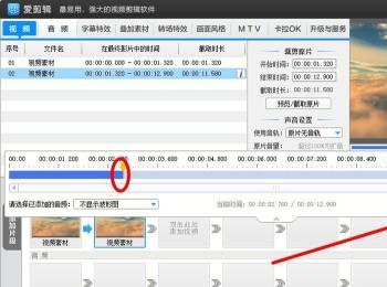 8. 在创新时间轴上,定位到想要截取片断的起始点,以“1秒32”为例,点击右侧的“超级剪刀手”图标,就将视频剪为两部分了