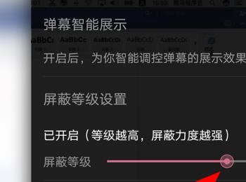 5.第五步,来到下图所示的弹幕的窗口后,更改屏蔽等级右边的滑块,如果选择越高的等级数,那么屏蔽度也就越高。