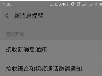 5. 进入新消息提醒页面后,将“接收新消息通知”和“接收语音和视频通话邀请通知”旁的开关都关闭即可。