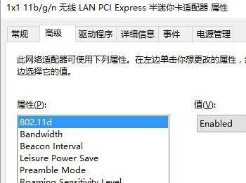 注意此时属性下802.11d对应的值应为enabled,如果是disabled,请改为enabled,然后确定。同时bandwidth的值应为20_40MHz,不同的电脑描述可能不一样,但总的来说就是选值大的那个。