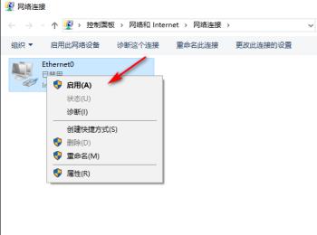 3. 第三步进入【网络连接】页面后,先右键单击已禁用的网络图标,接着在弹出的菜单栏中根据下图箭头所指,点击【启用】选项。