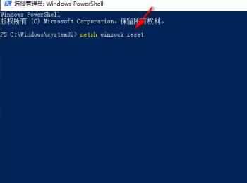 4. 最后右键单击左下角【开始】图标,在弹出的菜单栏中根据下图箭头所指,先点击【Windows PowerShell(管理员)】选项,接着在命令行中输入【netsh winsock reset】并按下【回车】键,然后等待网络重启。