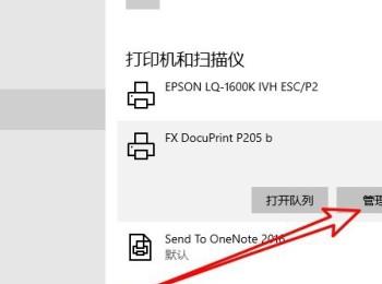 4. 第四步,我们可以看到如下图所示的页面,点击想要使用的打印机,接着点击箭头所指的“管理”选项。
