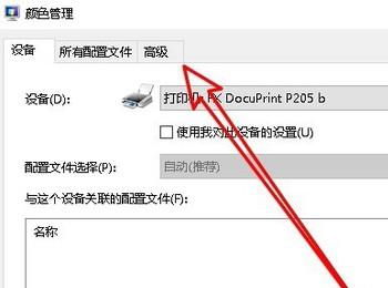 8. 第八步,来到颜色管理页面后,点击页面顶部的“高级”选项。