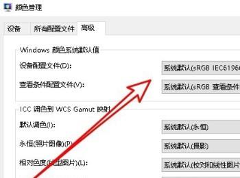 9. 第九步,在高级窗口中,设置设备配置文件与查看条件配置文件为系统默认,接着点击确定选项,然后重新启动电脑,我们就可以使用打印机打印图片了。