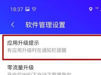 5. 第五步进入【软件管理设置】页面后,根据下图箭头所指,将【应用升级提示】选项后的灰色圆圈向右滑动,启用该功能。