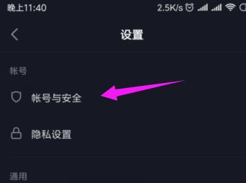 4. 进入设置页面后,选择【账号与安全】选项。