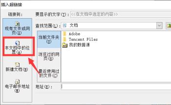 4. 如图,在弹出的插入超链接窗口中,在左侧点击本文档的位置选项。
