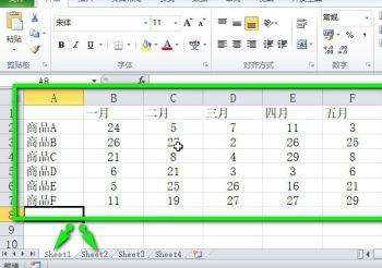 2. 如图,在打开的表格中,sheet1,sheet2两个表中都有下图的数据结构,即各商品的月销量额。