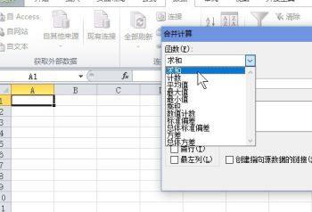 4. 在弹出的合并计算窗口中,点击函数的下拉菜单,选择 求和 选项。