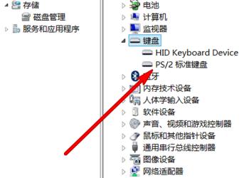 5. 第五步在下拉列表中,根据下图箭头所指,左键双击【PS/2标准键盘】选项。