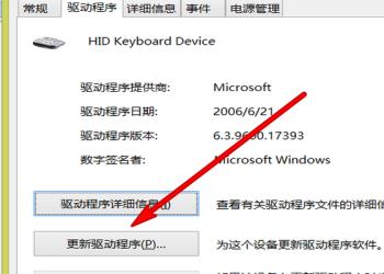 7. 最后点击顶部【驱动程序】,接着根据下图箭头所指,点击【更新驱动程序】选项,按照提示更新驱动,然后重新测试键盘是否正常。