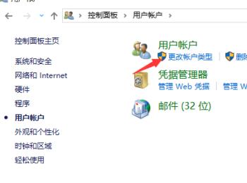 3. 在打开的页面,点击用户帐户下的“更改账户类型”选项: