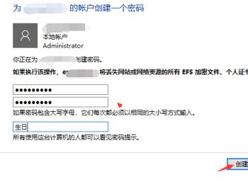 6. 然后根据密码的设置规则,设置自己的开机密码,最后点击创建密码即可: