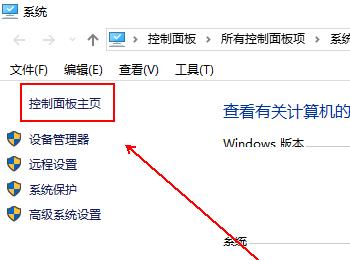 3. 第三步打开【系统】窗口后,根据下图箭头所指,点击【控制面板主页】选项。