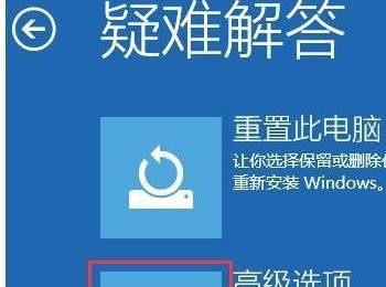 5. 第五步在【疑难解答】页面中,根据下图所示,点击【高级选项】图标。