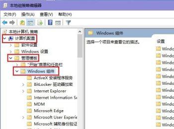 2. 在打开的本地组策略编辑器页面,左侧依次展开【计算机配置】—【管理模板】—【Windows组件】选项。