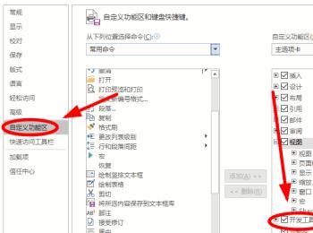4. 在弹出的Word选项窗口中,左侧点击【自定义功能区】选项,然后勾选上【开发工具】选项
