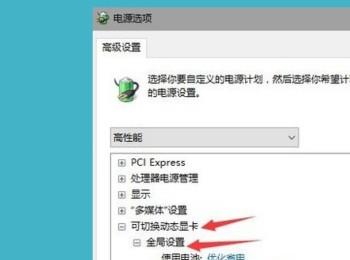 5. 接着在电源选项下,将【可切换动态显卡】下的接通电源选项设置为【最大化性能】