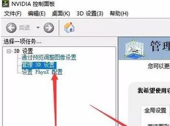 3. 第三步在弹出的窗口中,根据下图箭头所指,先点击左侧【管理3D设置】,接着点击【首选图形处理器】选项。