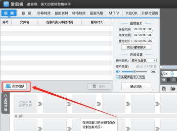 1. 首先第一步打开电脑中的【爱剪辑】软件,根据下图箭头所指,先点击【添加视频】选项,接着选中视频并点击【确定】。