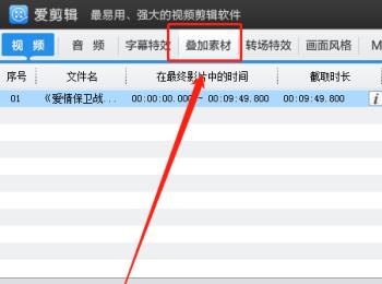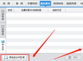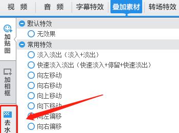 3. 第三步根据下图箭头所指,先点击【叠加素材】选项,接着点击【去水印】。
