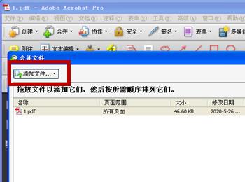 2.在如图对话框中,点击【添加文件】选项,选择要合并的文件