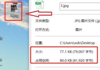 1.第一步,右击想要编辑的图片,接着点击弹出窗口中的属性选项,可以看到该图片的大小为77.1kb。