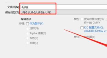 5.第五步,完成图片的编辑后,点击页面顶部的文件选项,然后点击弹出窗口中的存储为选项,根据自己的需求,来更改文件的名称及保存路径等内容,接着点击右下角箭头所指的保存选项。