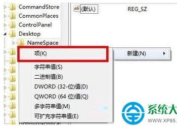 3、点击“NameSpace”项后,在右侧空白处单击右键,新建“项”,将该项命名为:{645FFO40——5081——101B——9F08——00AA002F954E}