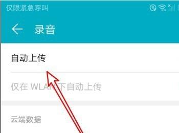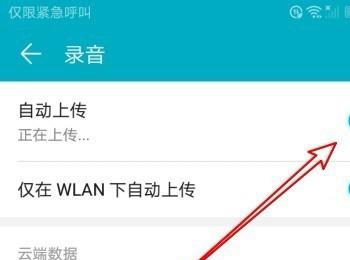 6.第六步在【录音】页面中,根据下图箭头所指,将【自动上传】选项后的圆圈向右滑动,启用该功能。