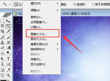 4. 在打开的菜单中,选择【图像大小】选项。