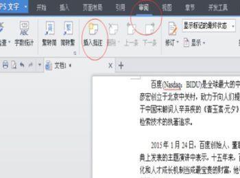 三、如果你想在文字中间插入一段话,可以直接把鼠标放置中间,然后点击批注,在批注中间插入你所想写的话。如图: