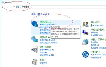 3. 在打开的控制面板页面,选择"系统和安全"选项,打开