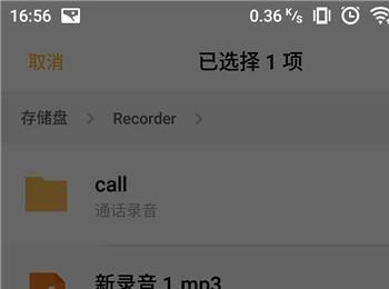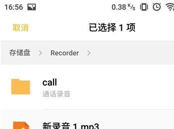 进入录音机文件,即可看到录音文件,长按选择文件,点击“分享”