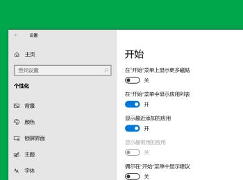 4.第四步,我们可以看到如下图所示的个性化页面,点击页面左侧的开始选项,接着打开使用全屏开始屏幕下面的开关,使其变成蓝色。