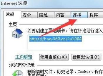 2. 第二步打开【Internet选项】窗口后,根据下图箭头所指,点击【连接】。