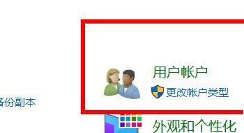 2. 在打开的控制面板页面,找到用户帐户选项,打开