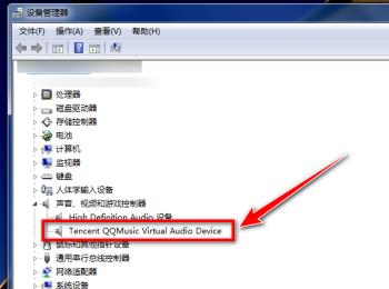 7.第七步,打开电脑中的设备管理器,如果可以在声音、视频和游戏控制器看到Tencent QQMusic Virtual Audio Device前面并没有“?”或红叉,说明可以使用虚拟麦克风功能了。