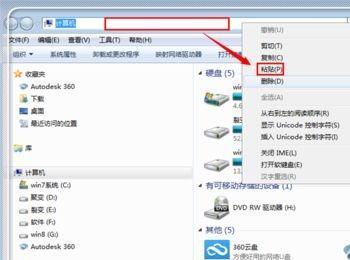 然后在出现的计算机界面中,在计算机“地址”栏目,点击一下鼠标左键,然后再点击鼠标右键,把这个地址“C:\Users\Administrator\AppData\Roaming\Microsoft\Templates”粘贴到里面。