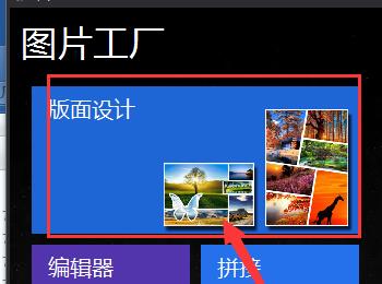 1. 首先第一步打开电脑中的【图片工厂】软件,根据下图箭头所指,点击【版面设计】选项。