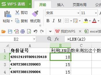 先利用函数LEN测出单元格中的数字长度如下图所示